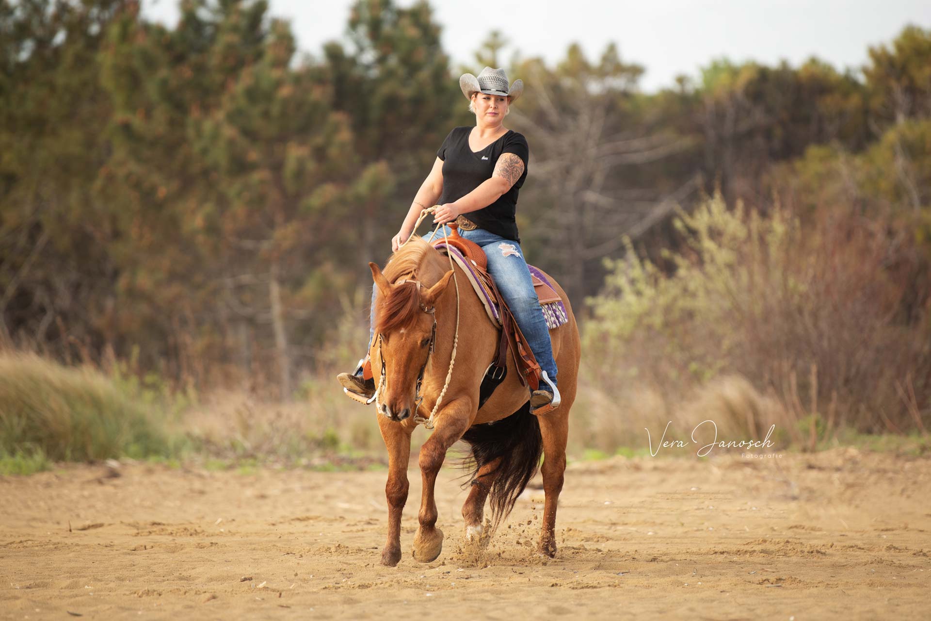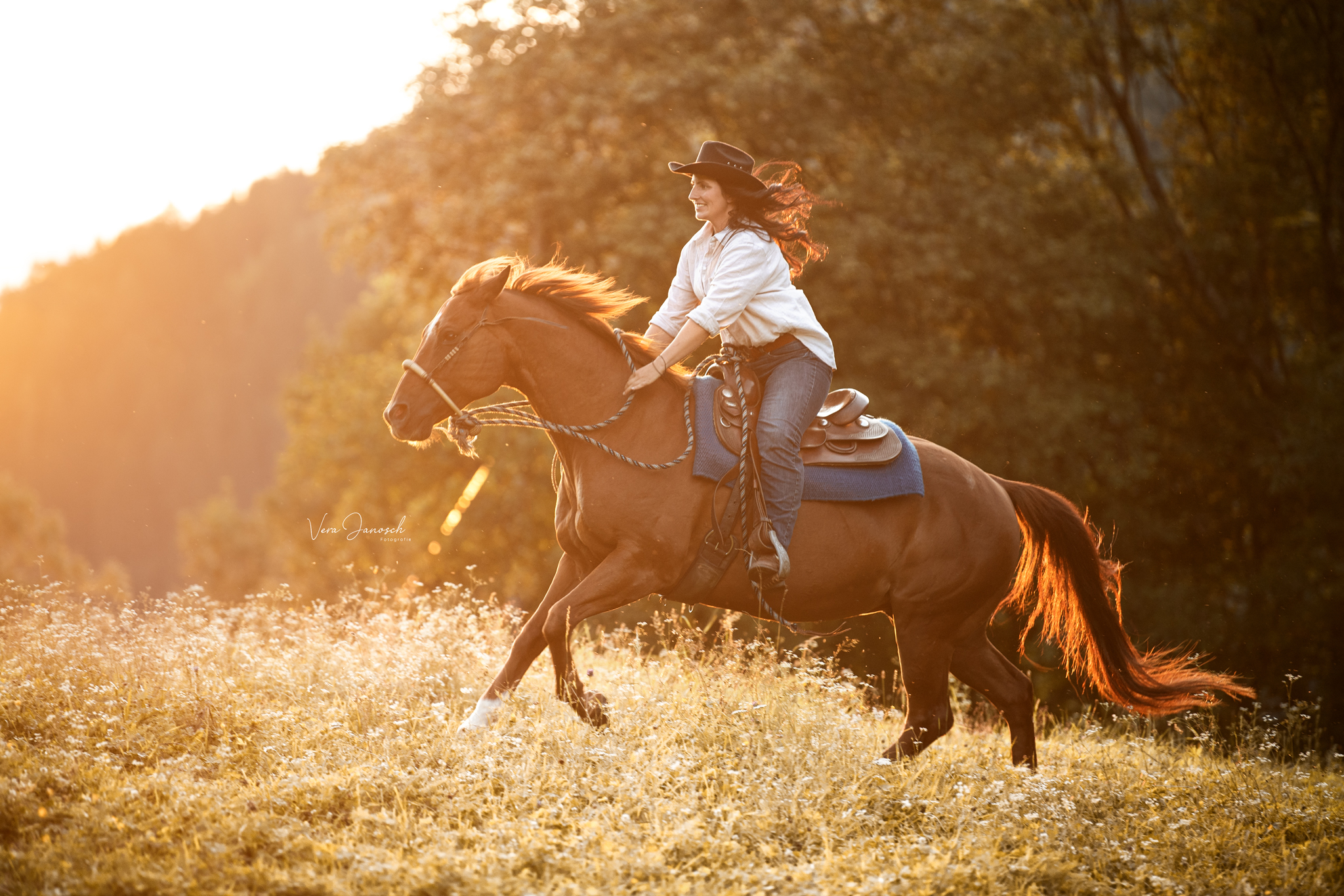 Reitbilder müssen nicht immer etwas mit "Dressurreiten", "Westernreiten" oder anderen spezifischen Disziplinen zu tun haben. Schöne Reitbilder entstehen immer dann, wenn sich sowohl Reiter als auch Pferd wohl fühlen und sind unabhängig von einer speziellen Reitweise. Daher gibt es hier kein "richtig" oder "falsch" - Richtig ist, was Spaß macht und sich gut anfühlt! Und das strahlen diese Bilder auch aus.